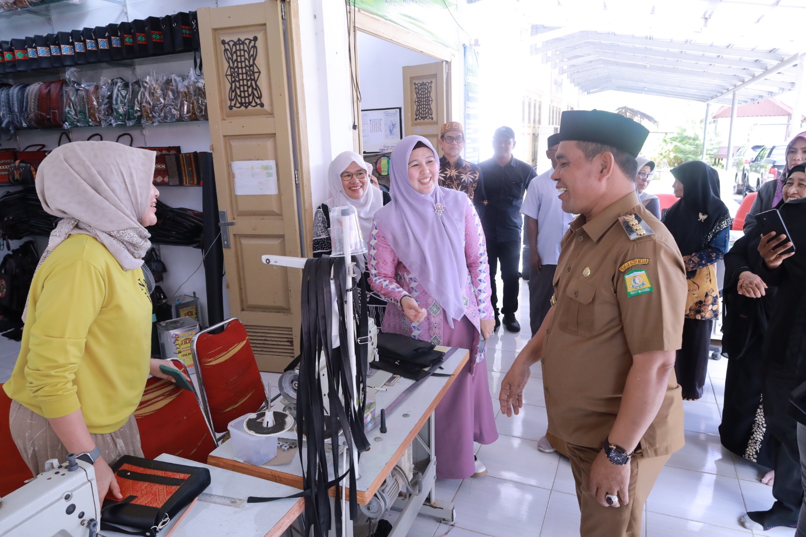 Bupati Aceh Besar H Muharram Idris didampingi Hj. Rita Mayasari Ketua Dekranasda Aceh Besar dan Nurbaiti Ketua DWP Aceh Besar, rumah produksi UMKM di komplek Dekranasda Aceh Besar, gampong Gani, kecamatan Ingin Jaya, Aceh Besar, Selasa (16/09/2025).