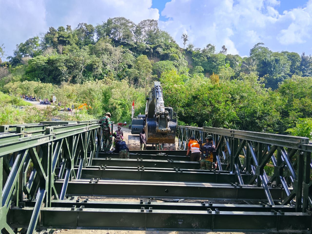 “Kami sangat bersyukur dan berterima kasih kepada TNI yang sudah turun langsung membantu membangun kembali jembatan ini. Kehadiran jembatan Bailey ini sangat kami nantikan karena menjadi akses utama untuk membawa hasil kebun dan kebutuhan sehari-hari,” ujarnya.