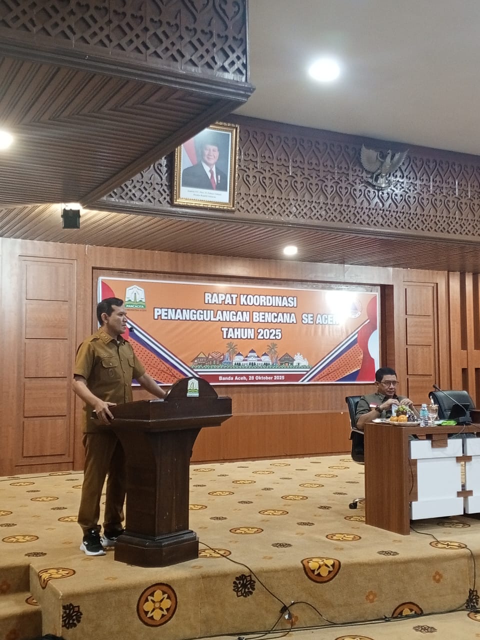 KSNNews.id|Banda Aceh – Wakil Gubernur Aceh, Fadhlullah, memimpin Rapat Koordinasi Penanggulangan Bencana se-Aceh Tahun 2025 yang digelar di Ruang Serba Guna Kantor Gubernur Aceh Banda Aceh, Selasa (28/10/2025). Rapat ini dihadiri oleh Kepala Badan Nasional Penanggulangan Bencana (BNPB) Letjen TNI Dr. Suharyanto, S.Sos., M.M., para bupati dan wali kota se-Aceh, unsur Forkopimda, Kepala Badan Penanggulangan Bencana Aceh (BPBA), serta perwakilan dari Polda Aceh, Kodam Iskandar Muda, dan Basarnas.