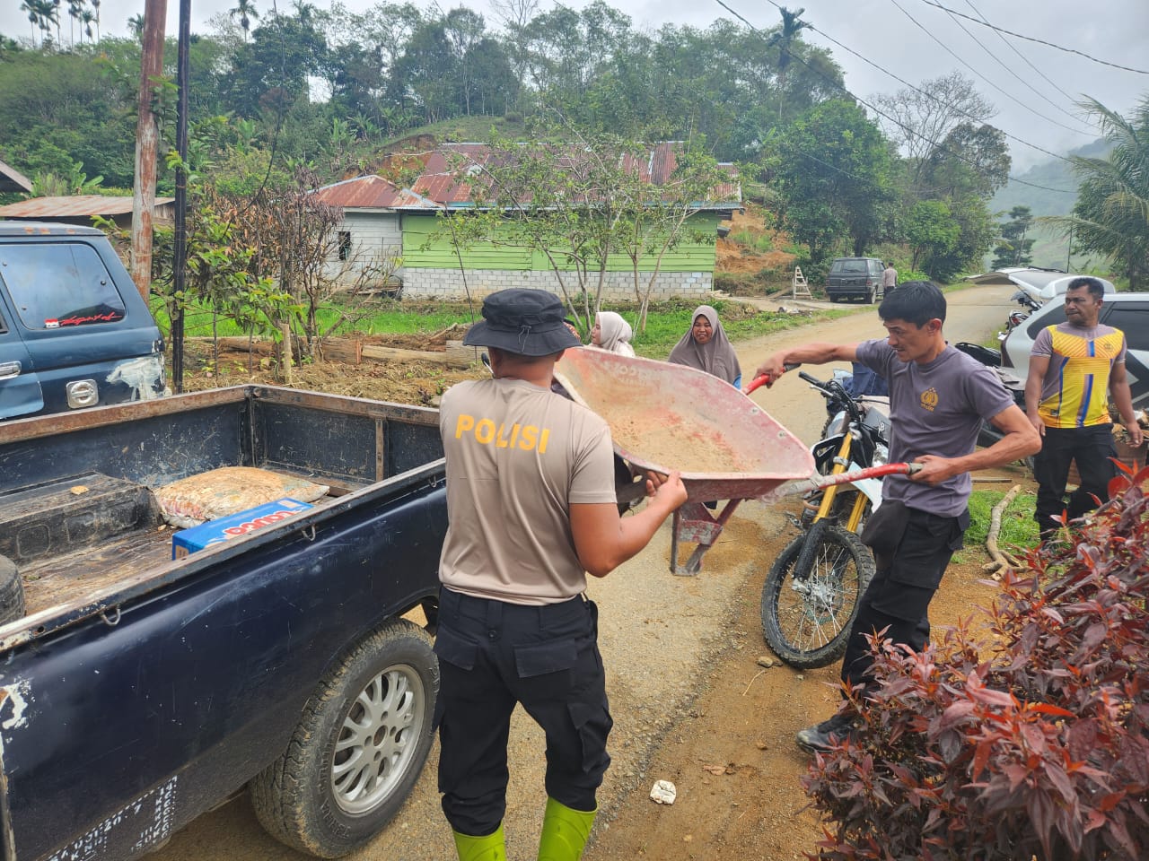 Polsek Celala Gotong Royong Bantu Warga Terdampak Banjir Bandang dan Longsor di Kuyun Lah