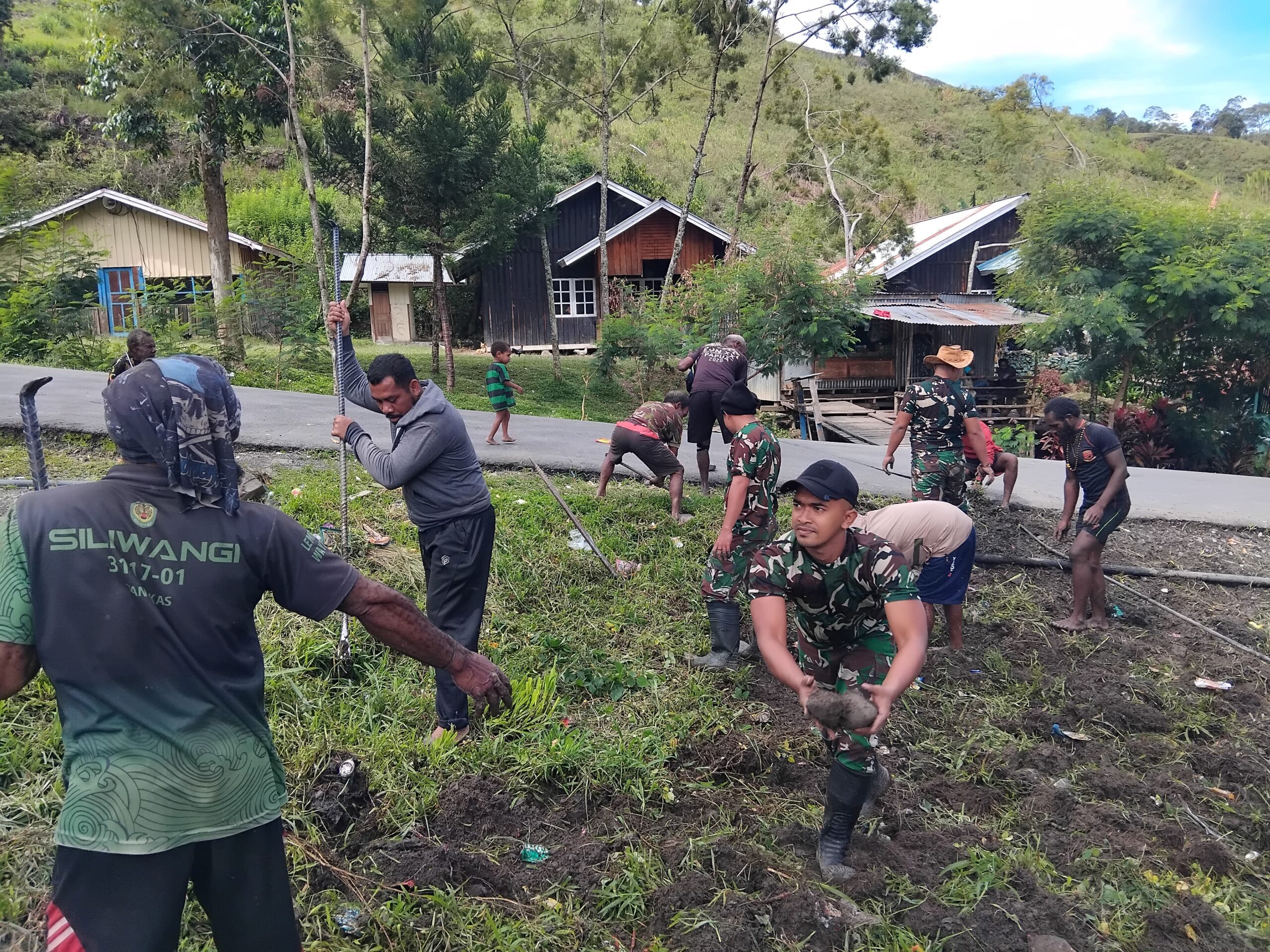 Satgas Yonif 112/DJ Dan Warga Gotong Royong Bersihkan Lingkungan Di Puncak Jaya