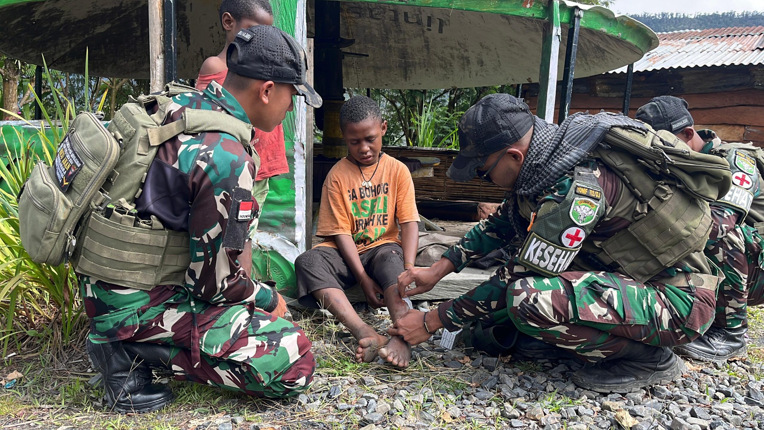 KSNNews.id|Puncak Jaya – Satgas Yonif 112/DJ Pos Kampung 55 kembali menunjukkan pelayanan dan kemanunggalan dengan Masyarakat melalui kegiatan layanan kesehatan gratis bagikan makanan dan pakaian layak pakai di Kampung Luweniri Distrik Mulia Kab. Puncak Jaya Prov. Papua Tengah. Jum’at (07/11/2025).