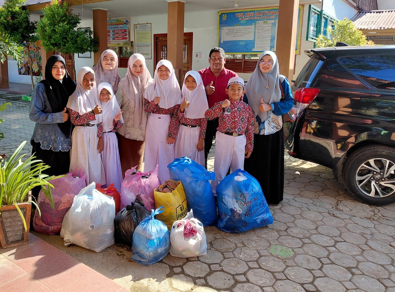 Kegiatan mulia ini merupakan inisiatif dari pihak sekolah dan siswa untuk menumbuhkan rasa empati serta kepedulian sosial sejak dini. Dengan antusias, para siswa mengumpulkan pakaian-pakaian yang masih layak pakai dari rumah masing-masing, yang kemudian disortir dan dikemas rapi dalam berbagai kantong plastik besar. Terlihat wajah-wajah ceria para siswa dan guru yang berpose bersama tumpukan donasi, menunjukkan kebanggaan atas partisipasi mereka dalam aksi kebaikan ini.