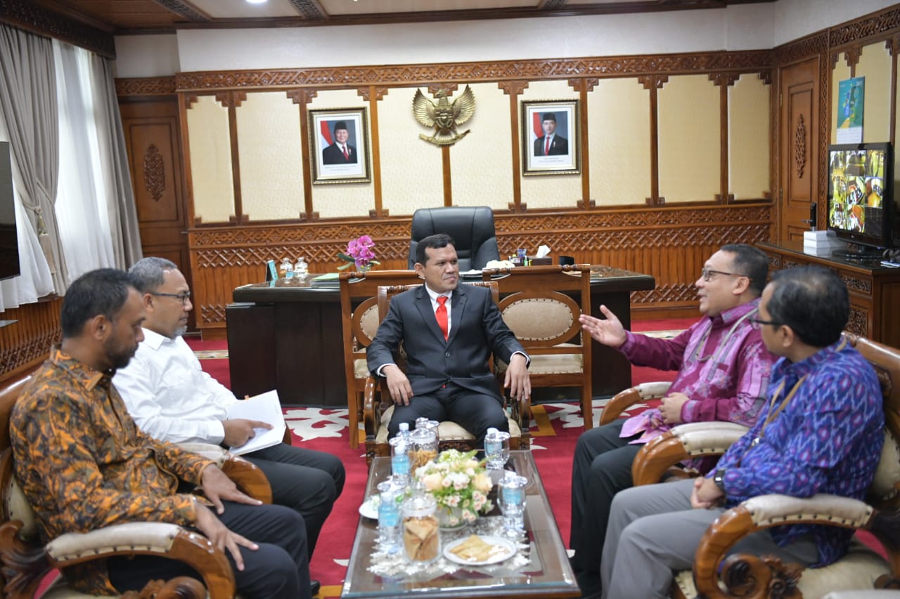 Wakil Gubernur Aceh, Fadhlullah, SE didampingi Kepala Biro Perekonomian Setda Aceh, Zaini menerima Silaturahmi Kepala Bank Indonesia Perwakilan Aceh, Agus Chusaini dan Rombongan diruang rapat Wakil Gubernur Aceh, Jumat, 02/05/2025.