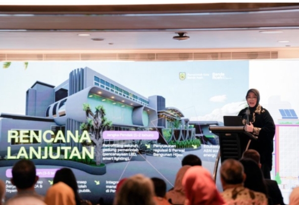 Dalam presentasinya, Illiza menjelaskan langkah konkret Pemerintah Kota Banda Aceh dalam menurunkan emisi karbon, antara lain melalui retrofitting gedung pemerintah, penerapan PLTS atap, serta revisi kebijakan menuju penerapan bangunan hijau di tingkat kota.